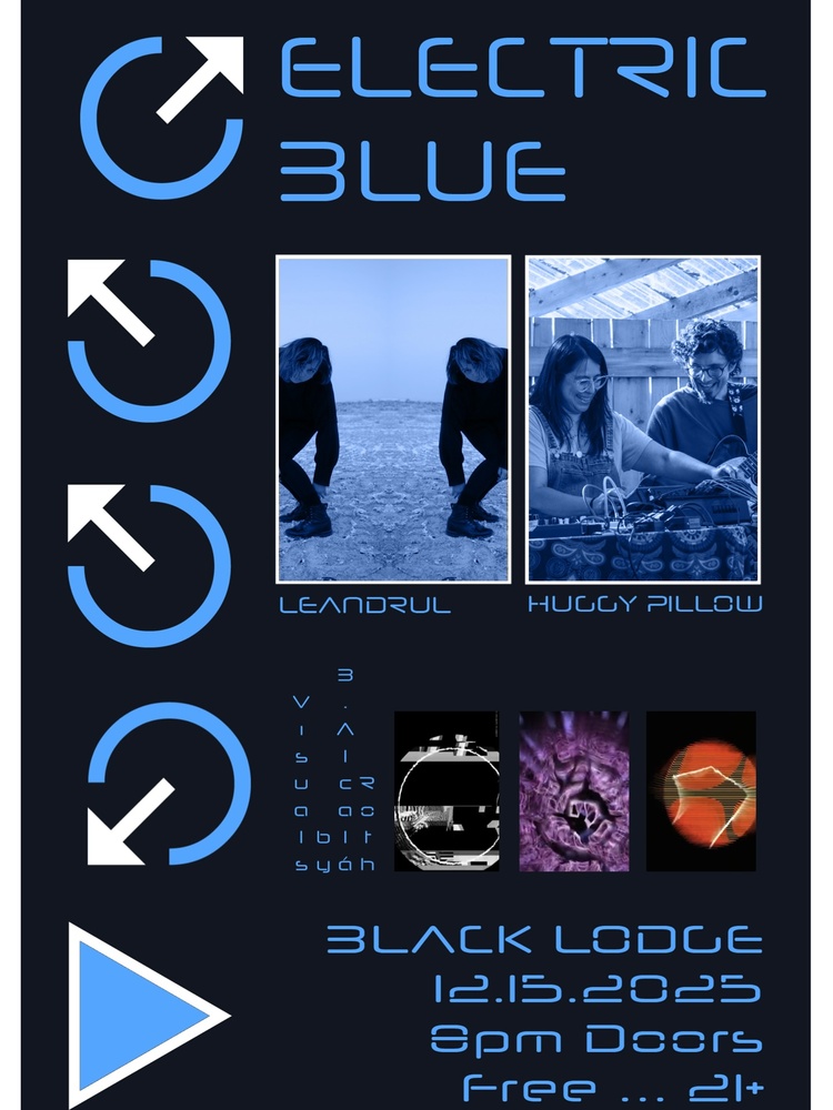 Electric Blue: Leandrul / Huggy Pillow Monday, December 15, 8:00 PM at Black Lodge - Event Page Add to Google Calendar