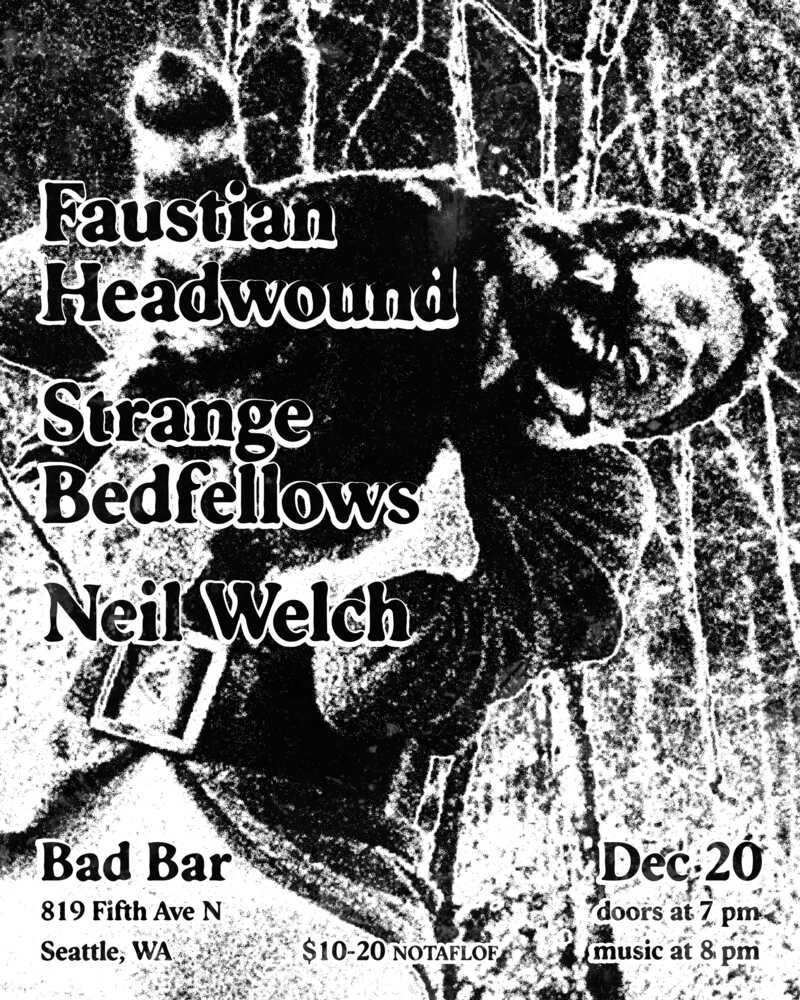 Faustian Headwound / Strange Bedfellows / Neil Welch Saturday, December 20, 7:00 PM at Bad Bar - Event Page Add to Google Calendar