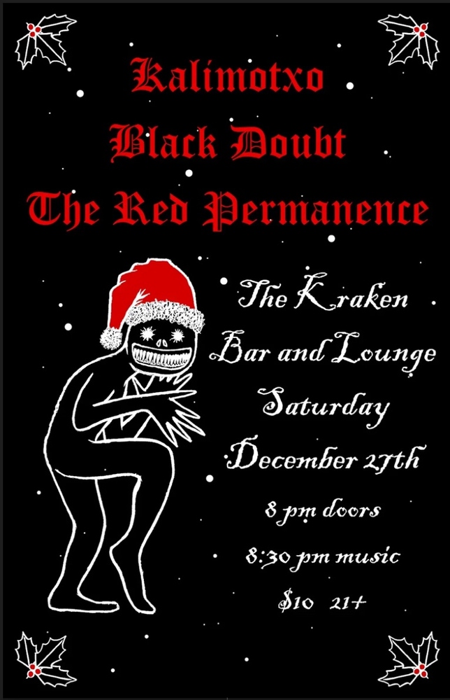Black Doubt / Kalimotxo / The Red Permanence Saturday, December 27, 8:00 PM at The Kraken Bar & Lounge - Event Page Add to Google Calendar