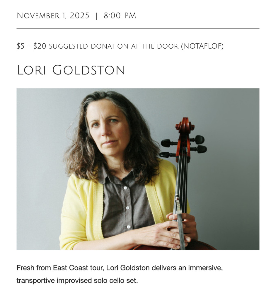 Lori Goldston Saturday, November 1, 8:00 PM at Chapel Performance Space - Event Page Add to Google Calendar