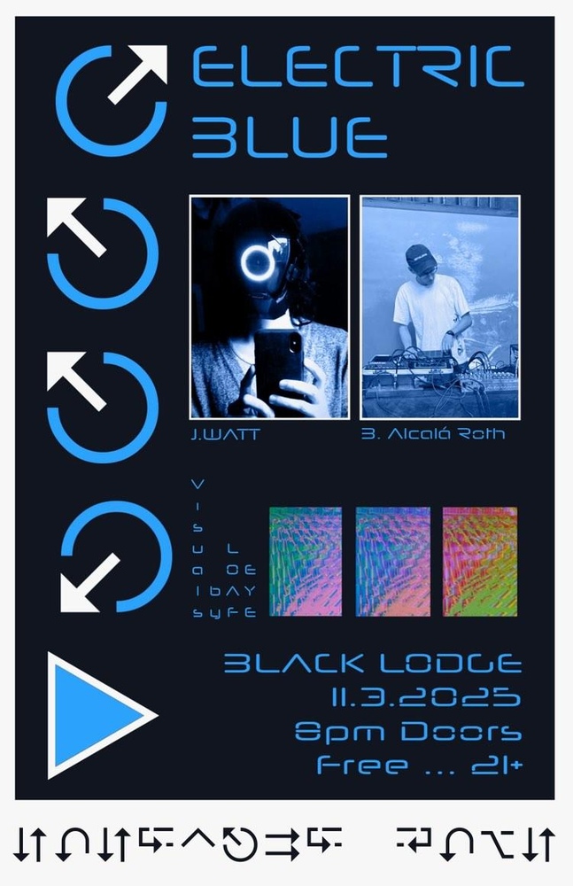 Electric Blue: J. Watt / B. Alcalá Roth Monday, November 3, 8:00 PM at Black Lodge - Event Page Add to Google Calendar
