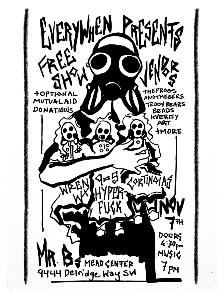 Everywhen: 9-5 Hyperfuck / Wren WX / Cortinoias Friday, November 7, 7:00 PM at Mr. B’s Mead Center - Event Page Add to Google Calendar