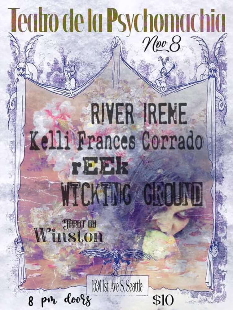 Kelli Frances Corrado / River Irene / rEEk / Wicking Ground Saturday, November 8, 8:00 PM at Teatro de la Psychomachia - Event Page Add to Google Calendar