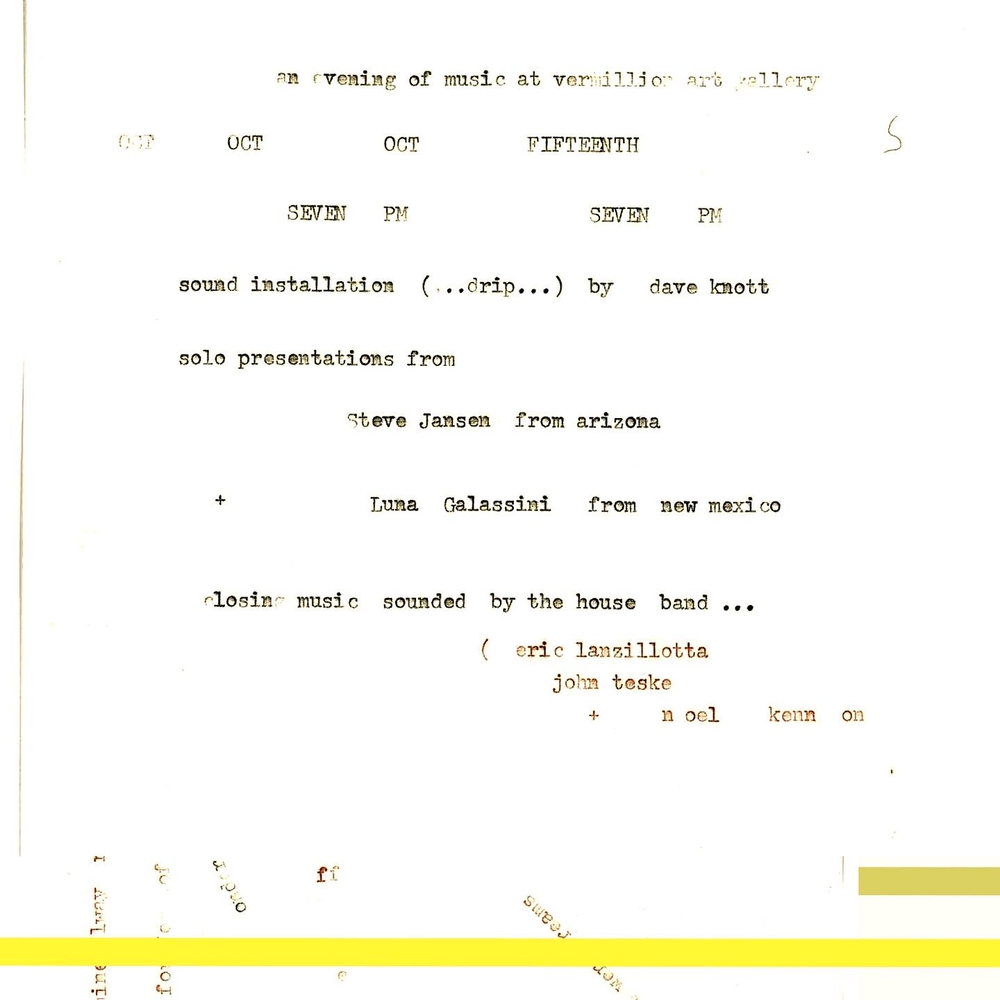An evening of music : (no seam / in chaos ) (382) Wednesday, October 15, 7:00 PM at Vermillion - Event Page Add to Google Calendar