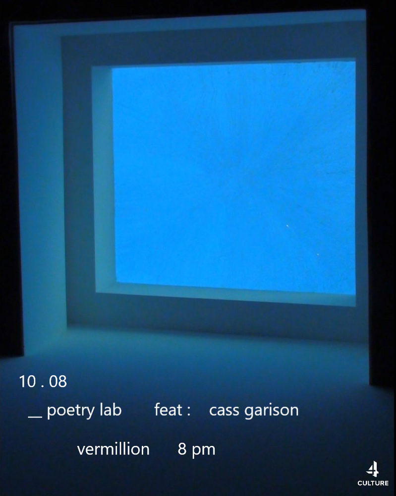poetry lab: Cass Garison Wednesday, October 8, 8:00 PM at Vermillion - Event Page Add to Google Calendar