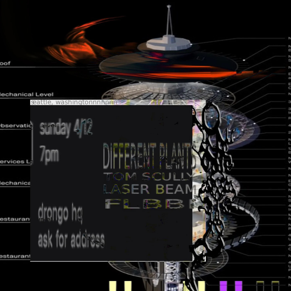 Different Plants / Tom Scully / Laser Beam / Flbbi Sunday, April 12, 7:00 PM at Drongo Tapes HQ - Event Page Add to Google Calendar