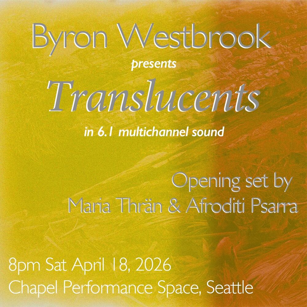 Byron Westbrook + Maria Thrän / Afroditi Psarra Saturday, April 18, 8:00 PM at Chapel Performance Space - Event Page Add to Google Calendar