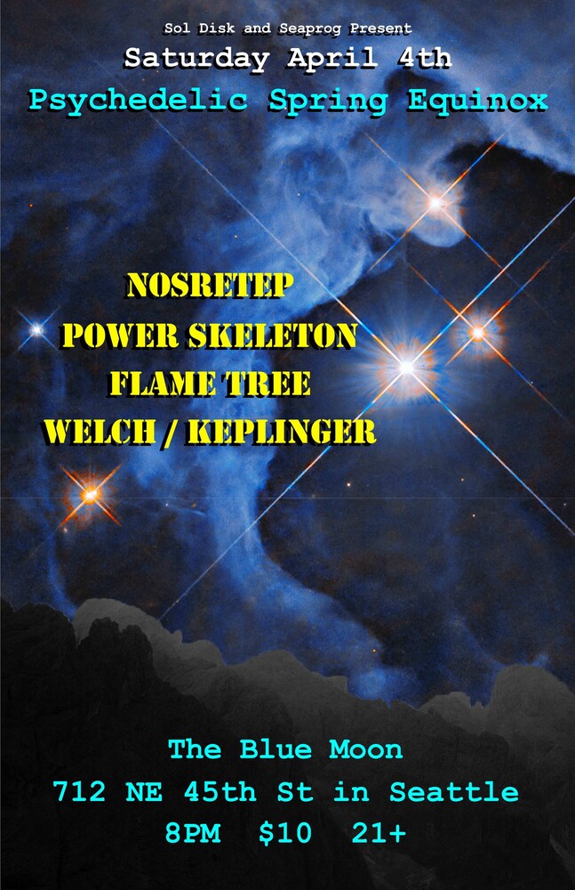 Nosretep / Power Skeleton / Flame Tree / Welch + Keplinger Saturday, April 4, 8:00 PM at Blue Moon Tavern - Event Page Add to Google Calendar