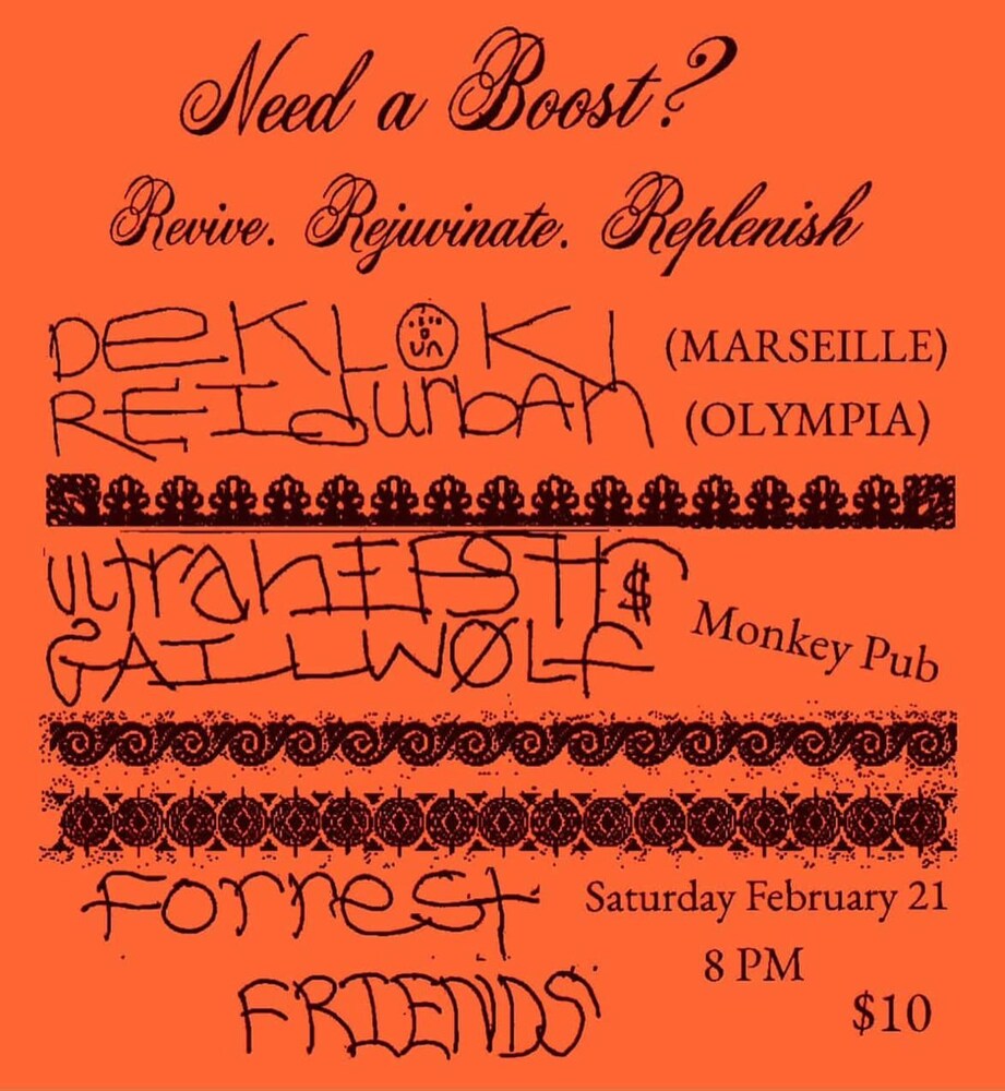 Dekloki / Reid Urban / Ultra Hipsters / Gail Wolf / Forrest Friends Saturday, February 21, 8:00 PM at Monkey Pub - Event Page Add to Google Calendar