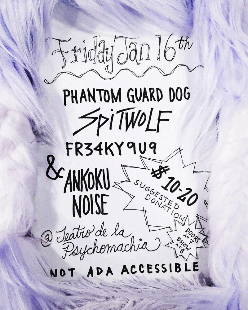 Phantom Guard Dog / Spitwolf / FR34KY9U9 / Ankoku Noise Friday, January 16, 7:00 PM at Teatro de la Psychomachia - Event Page Add to Google Calendar