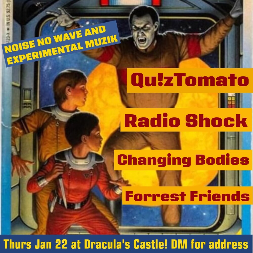 Qu!ztomato / Radio Shock / Changing Bodies / Forrest Friends Thursday, January 22, 7:00 PM at Dracula’s Castle - Event Page Add to Google Calendar