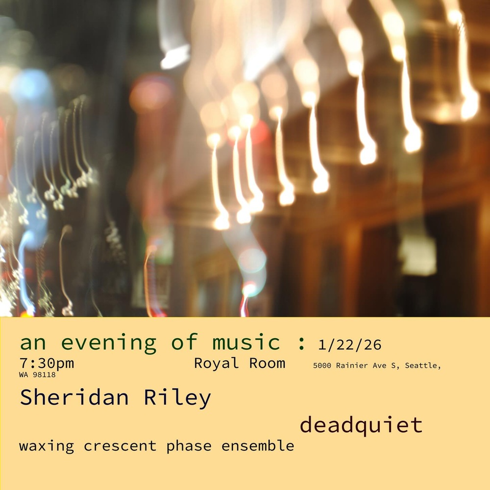 Sheridan Riley / deadquiet / waxing crescent phase ensemble Thursday, January 22, 7:30 PM at The Royal Room - Event Page Add to Google Calendar