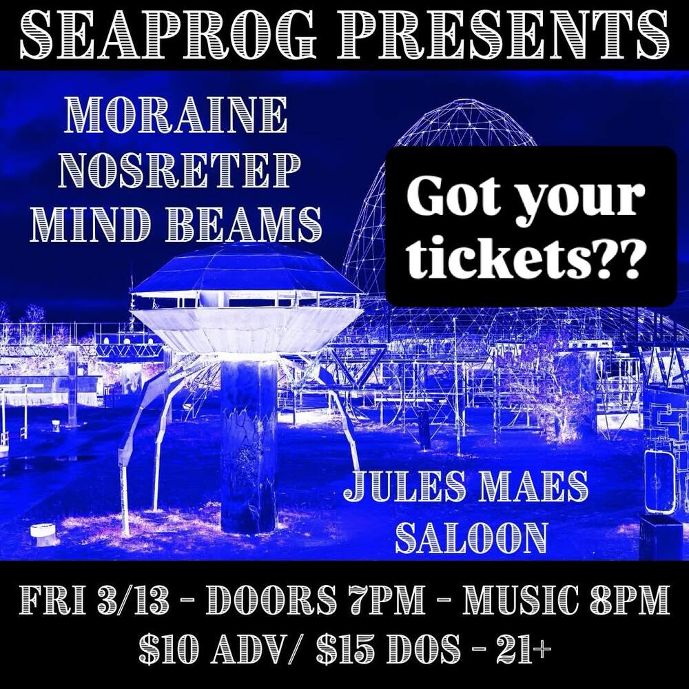 Moraine / Nosretep / Mind Beams Friday, March 13, 7:00 PM at Jules Maes Saloon - Event Page Add to Google Calendar