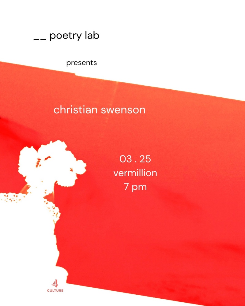 poetry lab: christian swenson Wednesday, March 25, 7:00 PM at Vermillion - Event Page Add to Google Calendar